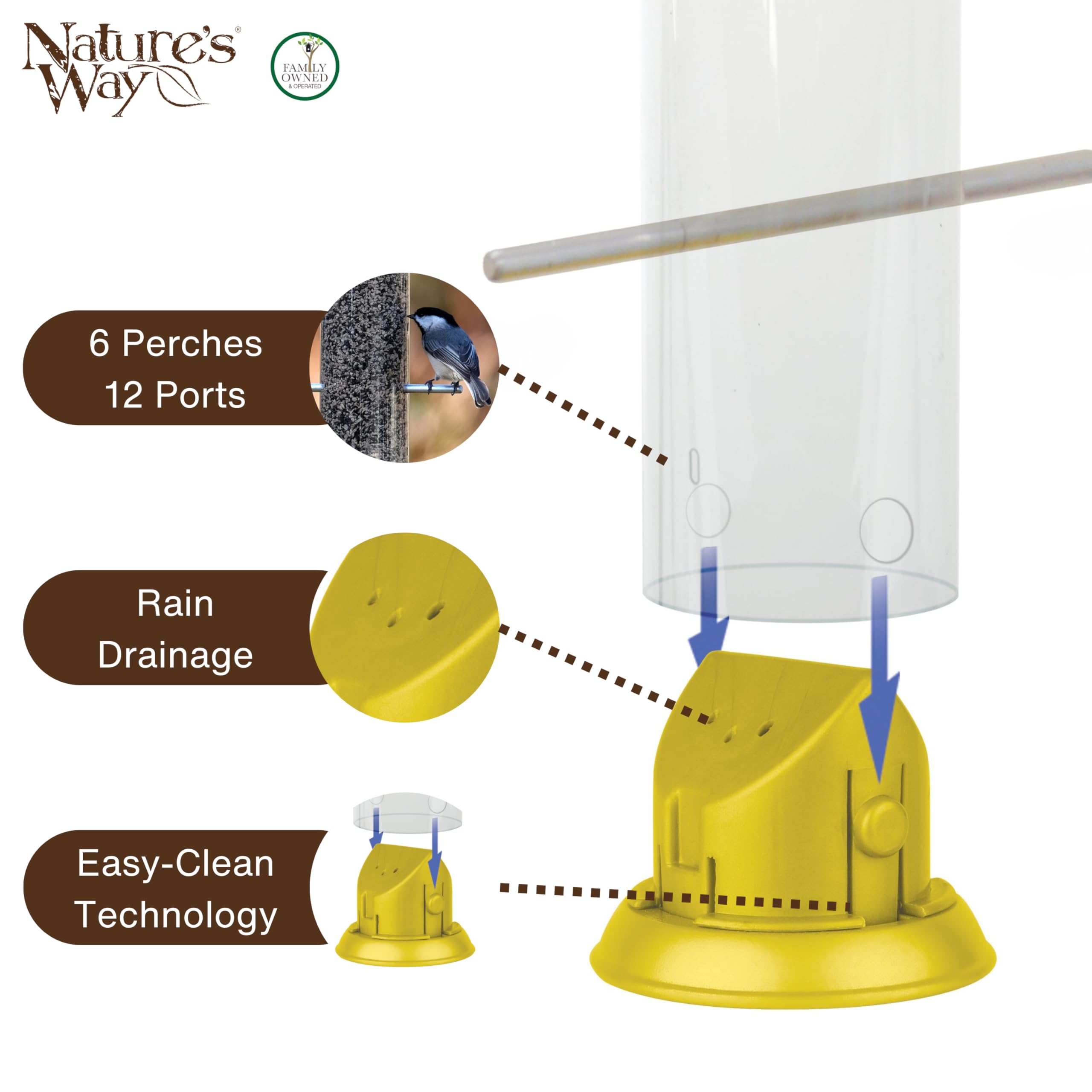 Nature's Way Bottoms-Up Metal Finch Thistle Feeder, 1.6 QT, Easy to Clean and Fill, Wild Bird Feeder and Outdoor Décor, Yellow