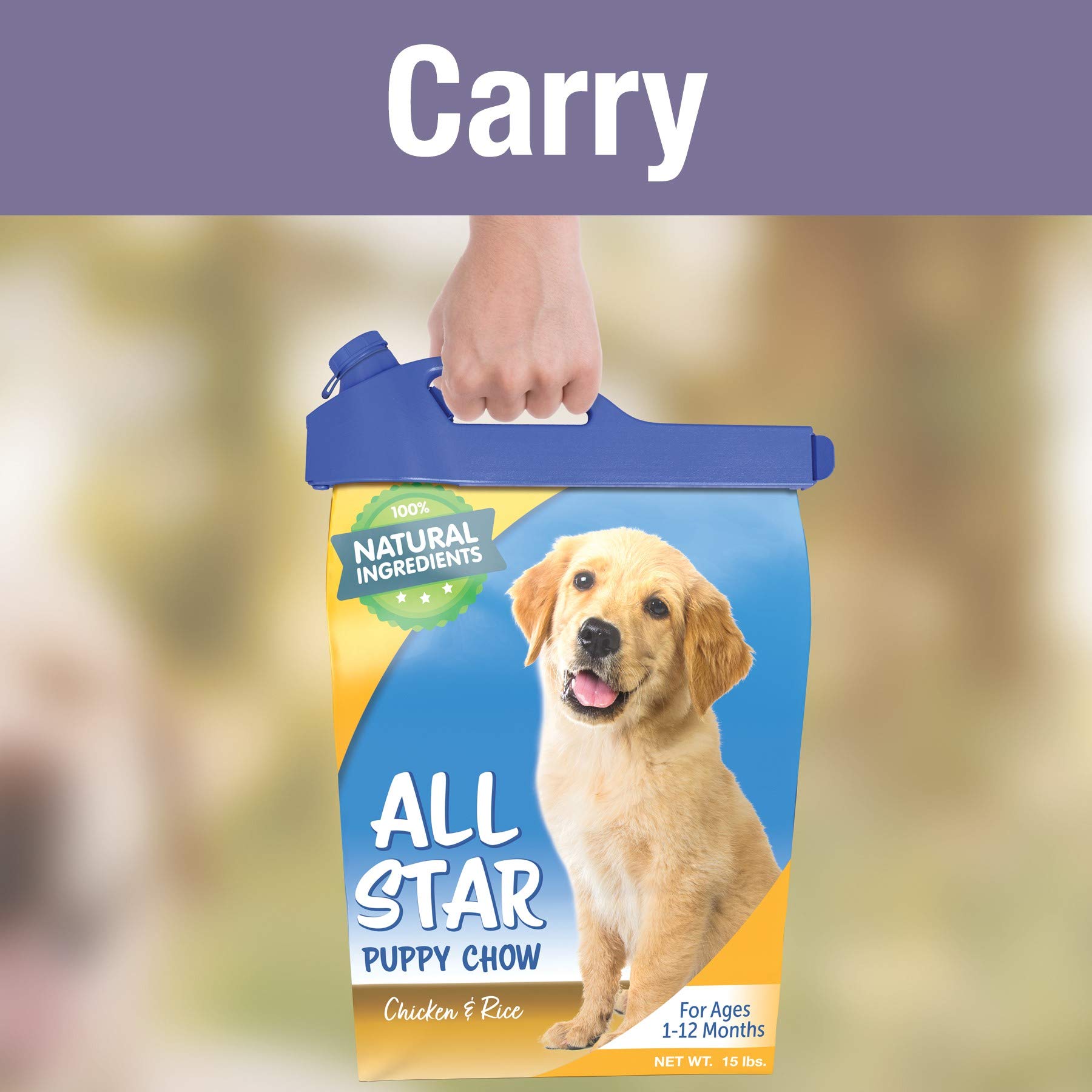 - CARRY, POUR, & STORE: An all-in one solution for storing and using big bulky bags of bird seed, dog or cat food, or garden fertilizer or seeds