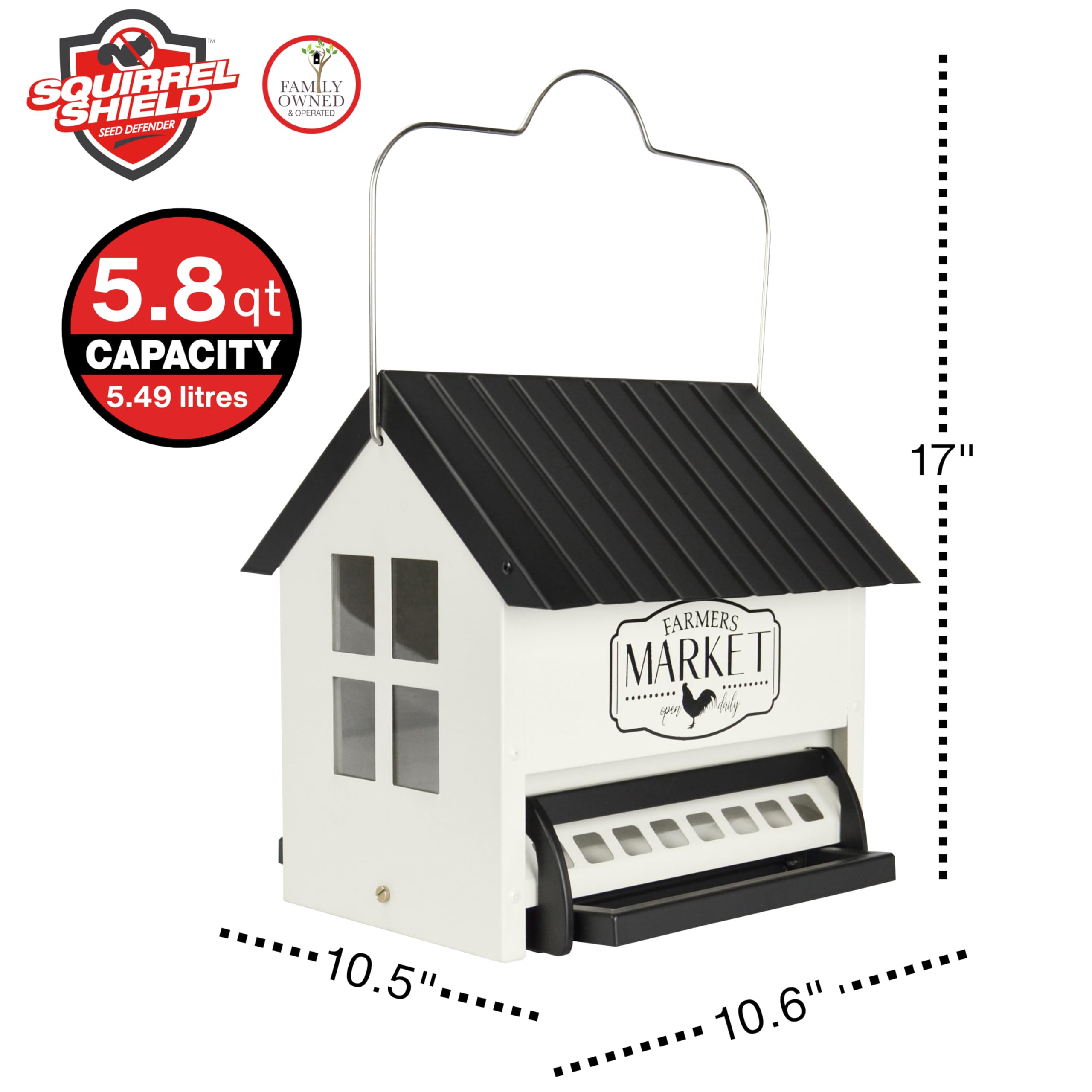 - DURABLE MATERIALS: Beautiful farmhouse charm design made with a durable powder-coated metal roof, base, feed ports, and perches for a longer lasting feeder